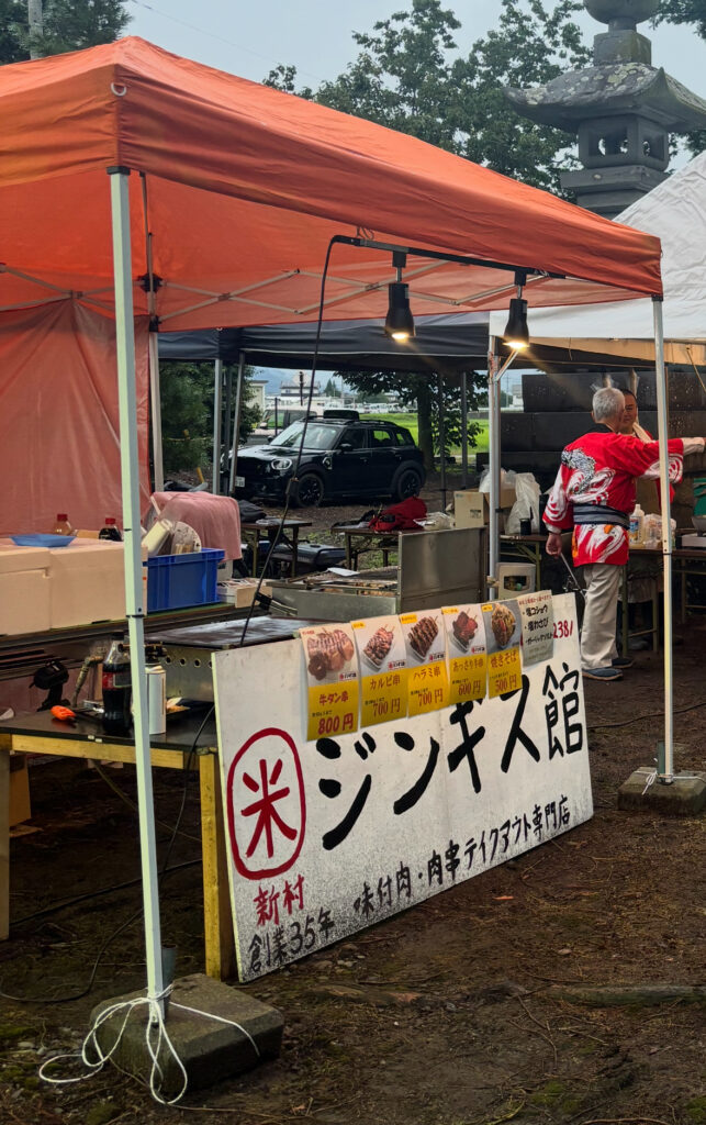 現在イベント出店はすべてテントでの露店販売で牛肉の串焼のみの販売をさせて頂きます。