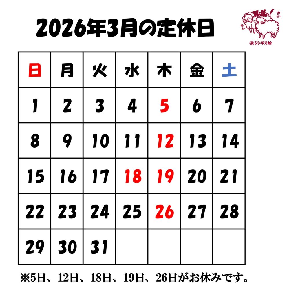 2026 3月定休日